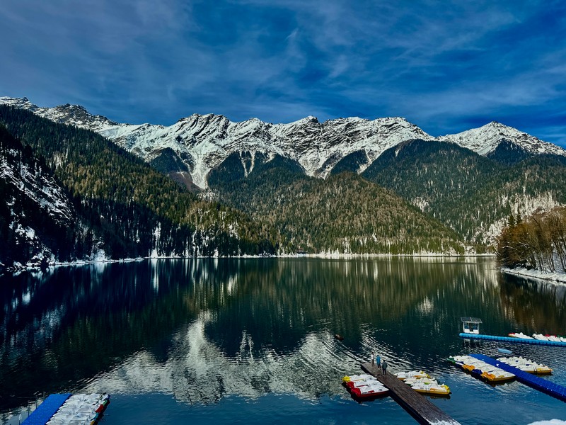 На озере Рица, крупнейшем на Западном Кавказе, вы полюбуетесь дивными пейзажами с открыток. Летом здесь буйствует зелень, осенью голубизну вод усиливают багряные краски, а зимой...