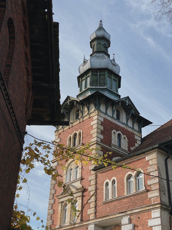 Водонапорная башня на Спортивной — архитектурная доминанта с башенками и арками, напоминающая средневековый замок.