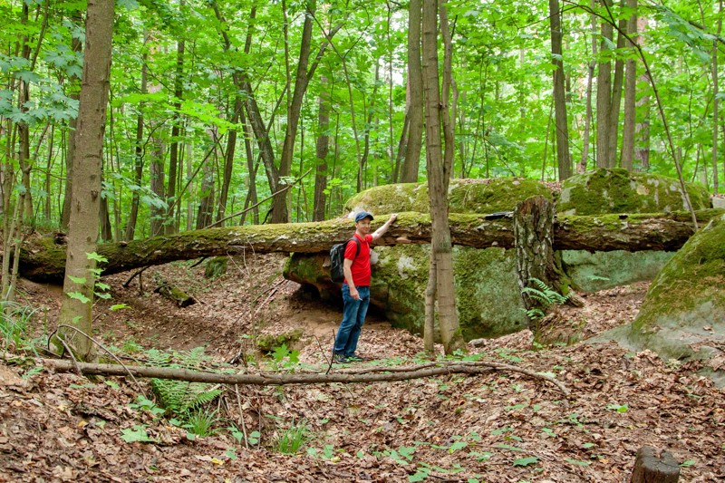 Добыча песчаника велась в этих краях уже 17 веке. В лесу выбирали такие места, где из земли выглядывали макушки валунов, их откапывали и раскалывали на куски. Вы увидите...